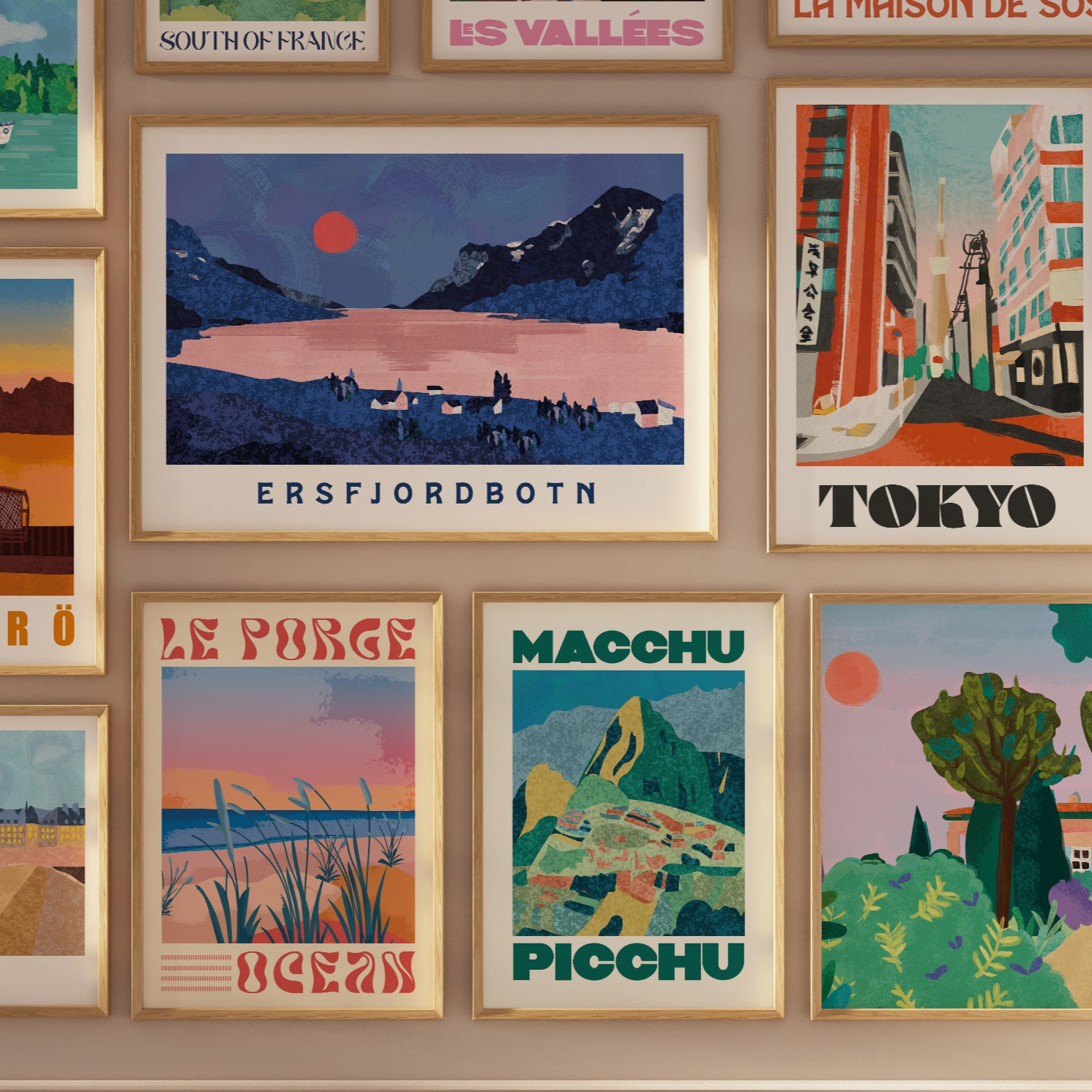 Découvrez ma collection d'affiches pleines de couleurs, avec des paysages et des villes qui en jettent. Parfait pour ajouter du peps et du style à votre déco, que vous soyez fan de nature ou d'ambiances urbaines.