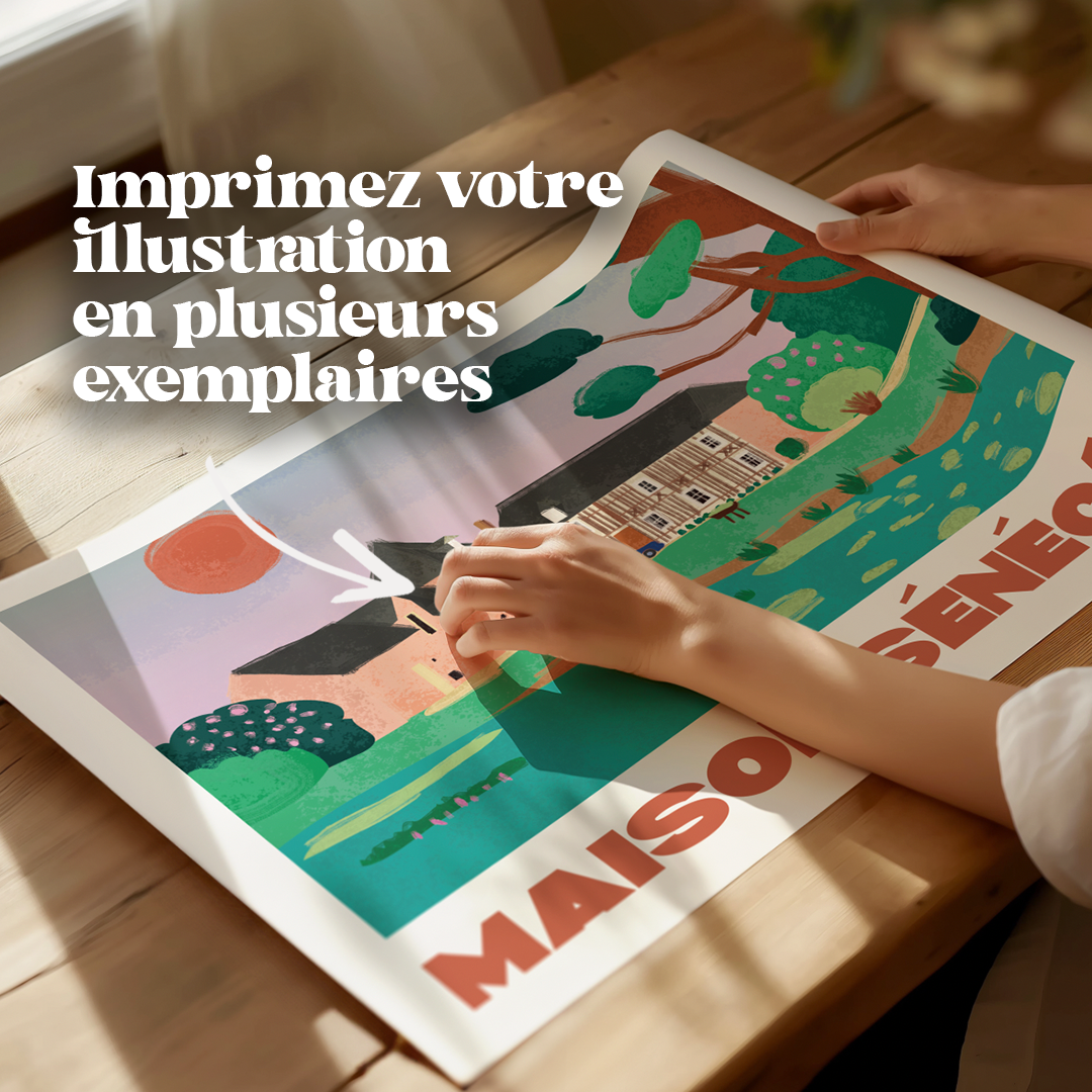 Si vous souhaitez imprimer en plusieurs exemplaires votre illustration pour partager vos souvenirs et créations avec vos proches, c'est possible ! Choisissez le format et on s'occupe du reste.